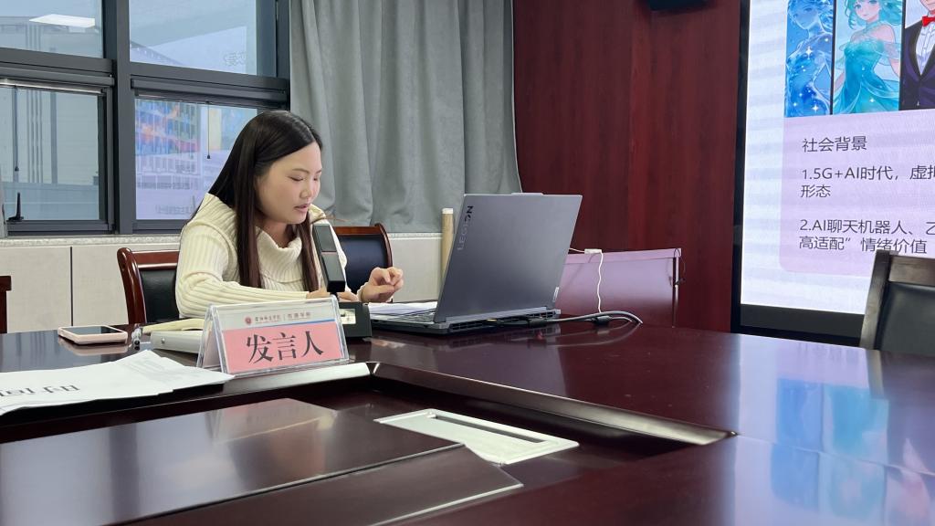 张敏从互动影视剧入手,探讨《从解码到编码:互动影视剧中受众的“协同创作”研究》;梁慧林以国产动画IP为线索,分析《从文化赋能到符号消费:国产动画IP驱动下cosplay文化的价值认同》;纪文慧关注粉丝文化,发表《体验经济视域下粉丝二创对影视文旅的价值创新与优化路径研究》;姚利超则基于媒介传播视角,进行《中职护理专业学生职业认同的量表研究》的汇报;田雨青以网络音乐为对象,探讨《<没出息>:网络时代音乐如何建构跨地域情感共同体》;岳艳丽聚焦人机关系,带来《和AI谈恋爱:虚拟恋爱中的爱情伦理困境》的思考。李阳老师对每项研究予以肯定,并在语言表达、案例分析与学术规范性方面给予指导。