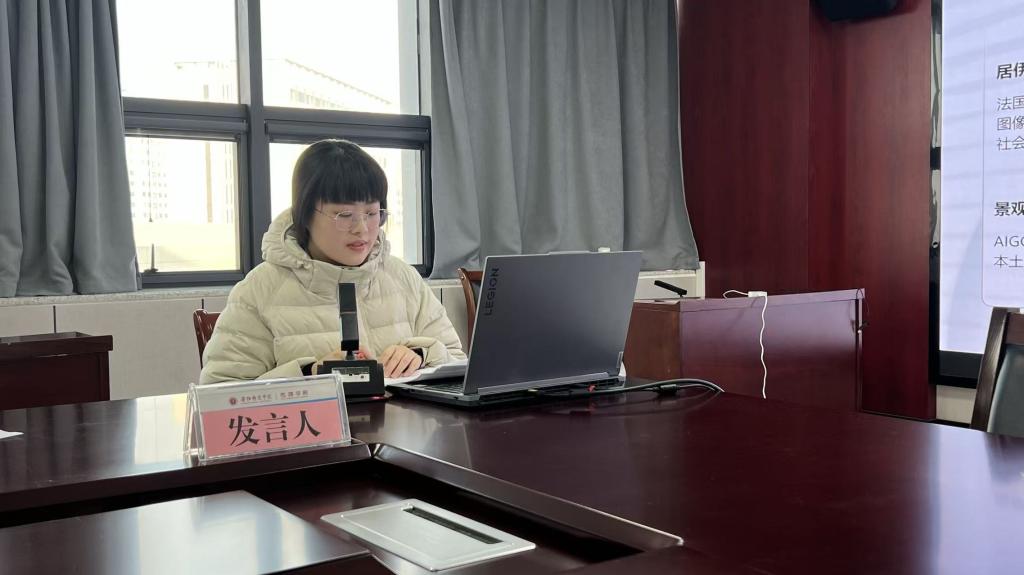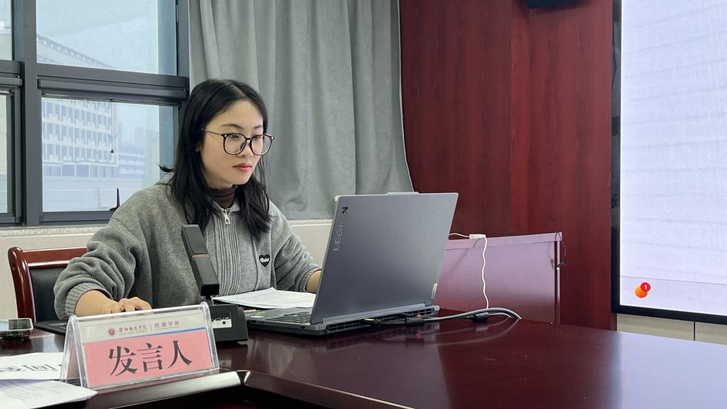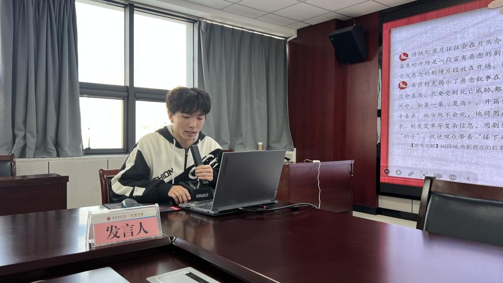 寇炳烁以《计量电影学视域下国产喜剧电影的视听语言分析》为题,从数据视角解析喜剧电影的视觉表达;楚朝艺聚焦《历史纪录片创作方式的当代转型——以<中华史记>为例》,探讨纪录片叙事手法的演变;许美琦以抗战电影为对象,作了《记忆书写与共同体建构:抗战电影的共情叙事研究》的报告;翟晰月关注AIGC技术,分享《情感定制与视觉乌托邦:AIGC在微短剧中的景观生产》;朱芸杉则从中老年受众出发,汇报《中老年坚屏微短剧的戏剧叙事建构——以家庭伦理题材为例》。王璐老师对每篇论文进行了细致点评,并就研究方法、理论支撑与学术表达等方面提出建议。