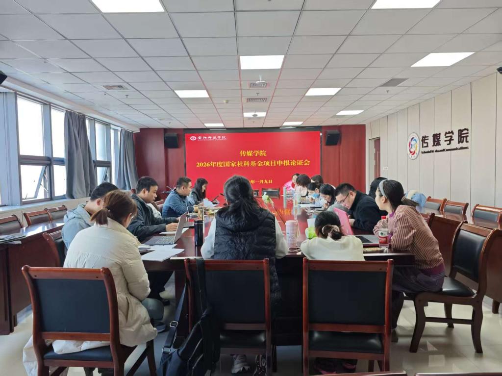 2026年1月9日下午,安阳师范学院传媒学院在513会议室举行国家社科基金项目申报第一场论证活动。学院院长汪向征、副院长杜丙新、王家东及全体申报教师共20余人参会,会议由王家东副院长主持。