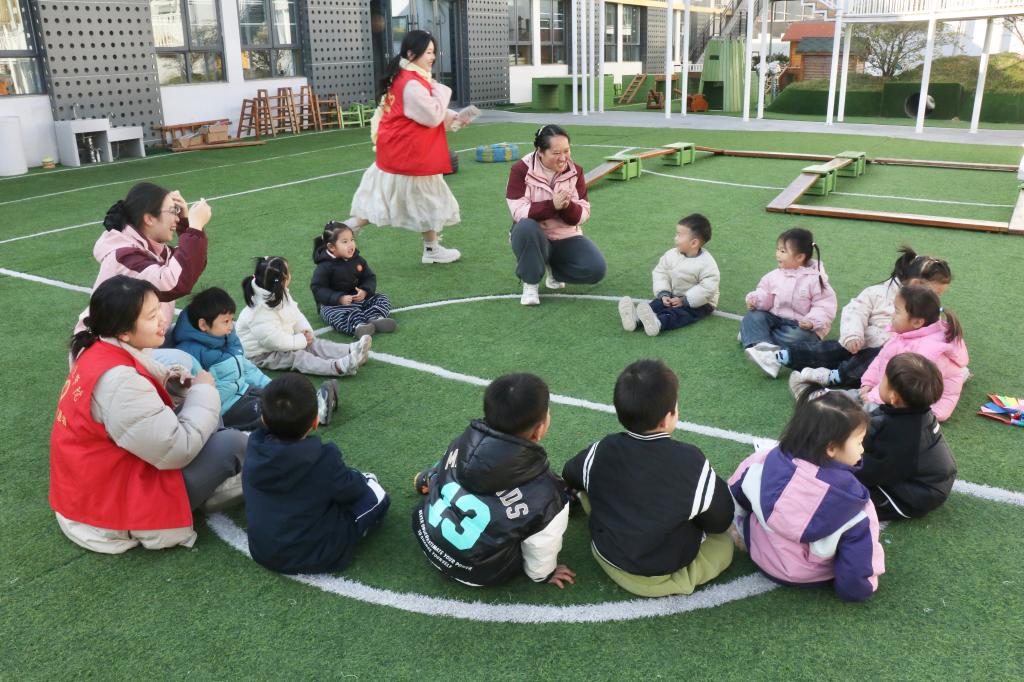 活动现场童趣盎然,志愿者以多元互动设计开启欢乐篇章。“童心唱未来”环节中,志愿者领唱经典儿歌,稚嫩声线交织成童真旋律,温暖在歌声中流淌;而在世界儿童日宣讲与问答环节里,借助卡通动画、趣味设问拆解节日内涵,孩子们踊跃举手抢答,现场满是轻快气息。“童趣游戏”环节中,志愿者组织孩子们在操场开展丢手绢游戏,在轻松欢快的氛围中拉近彼此距离,传递陪伴与欢乐;“童心树洞角”则架起暖心桥梁,志愿者俯身倾听孩童心愿与烦恼,温柔回应中让信任与安全感悄然滋生。
