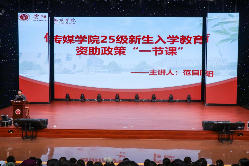 为帮助2025级新生全面了解在校期间各项资助政策,切实做到入学前无惑、入学时无忧、入学后无虑,9月25号晚,我院于明园1号教学楼演播厅开展新生入学教育资助政策宣讲活动。由学院资助专员范自阳开展资助政策讲解,全体2025级新生参加。