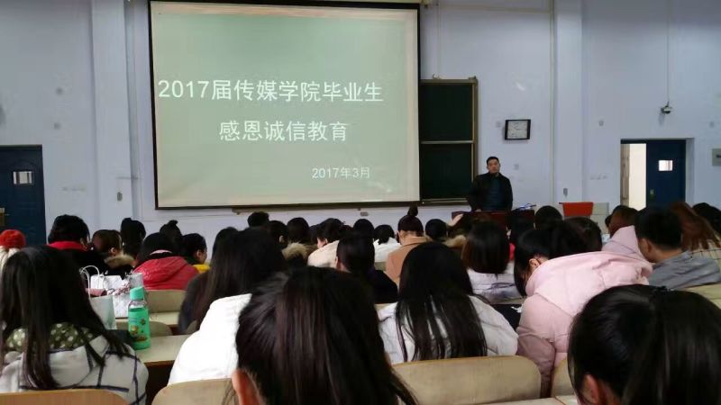 12月28日下午两点半,在和展阶梯301成功举办了2017届毕业生感恩诚信教育及离职手续办理活动。张苗老师,刘建鑫老师出席,全体17级毕业生参与。