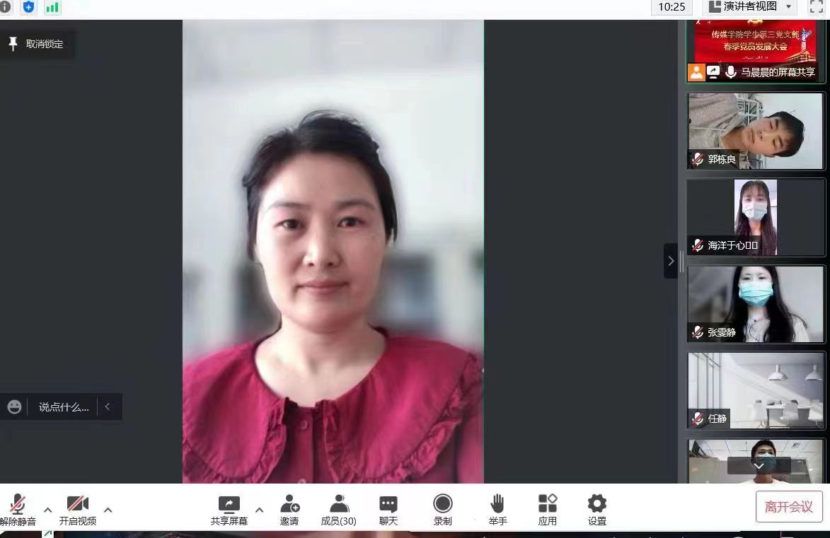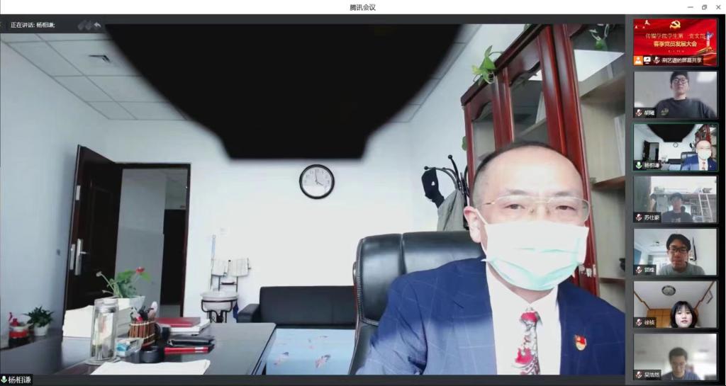 5月13日下午3点,我院各学生党支部以线上、线下相结合的形式召开春季党员发展大会。我院党委书记杨相谦、组织员王慧娟、党委副书记杜红芳、副院长汪向征、学生第一党支部书记王红燕、学生第二党支部书记于延、学生第三党支部书记尚轩轩、学生第四党支部书记孔维昌、我院部分教师党员、各学生党支部全体党员及预备党员参加此次会议。