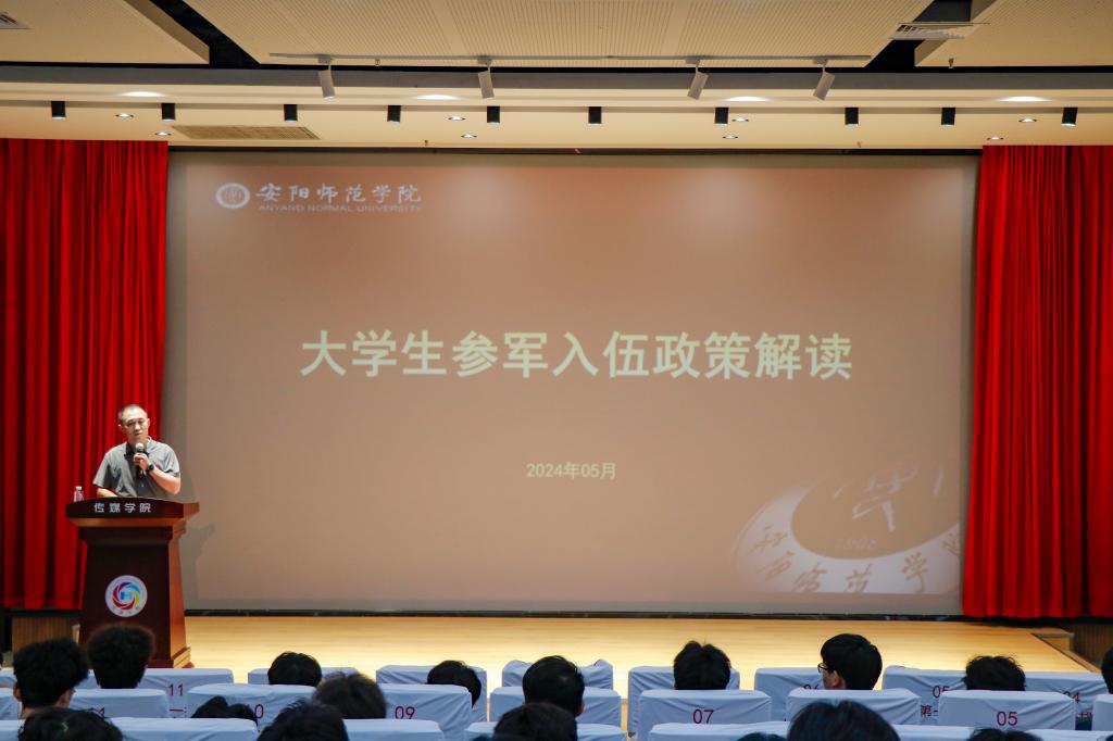 为进一步落实国家相关征兵工作要求,鼓励和引导大学生积极参军入伍,5月21日晚上,我院邀请校武装部军事训练与国防教育教研室主任秦晓宇在明园放映厅举行参军入伍政策宣讲会,活动由我院党委副书记陈妍主持。